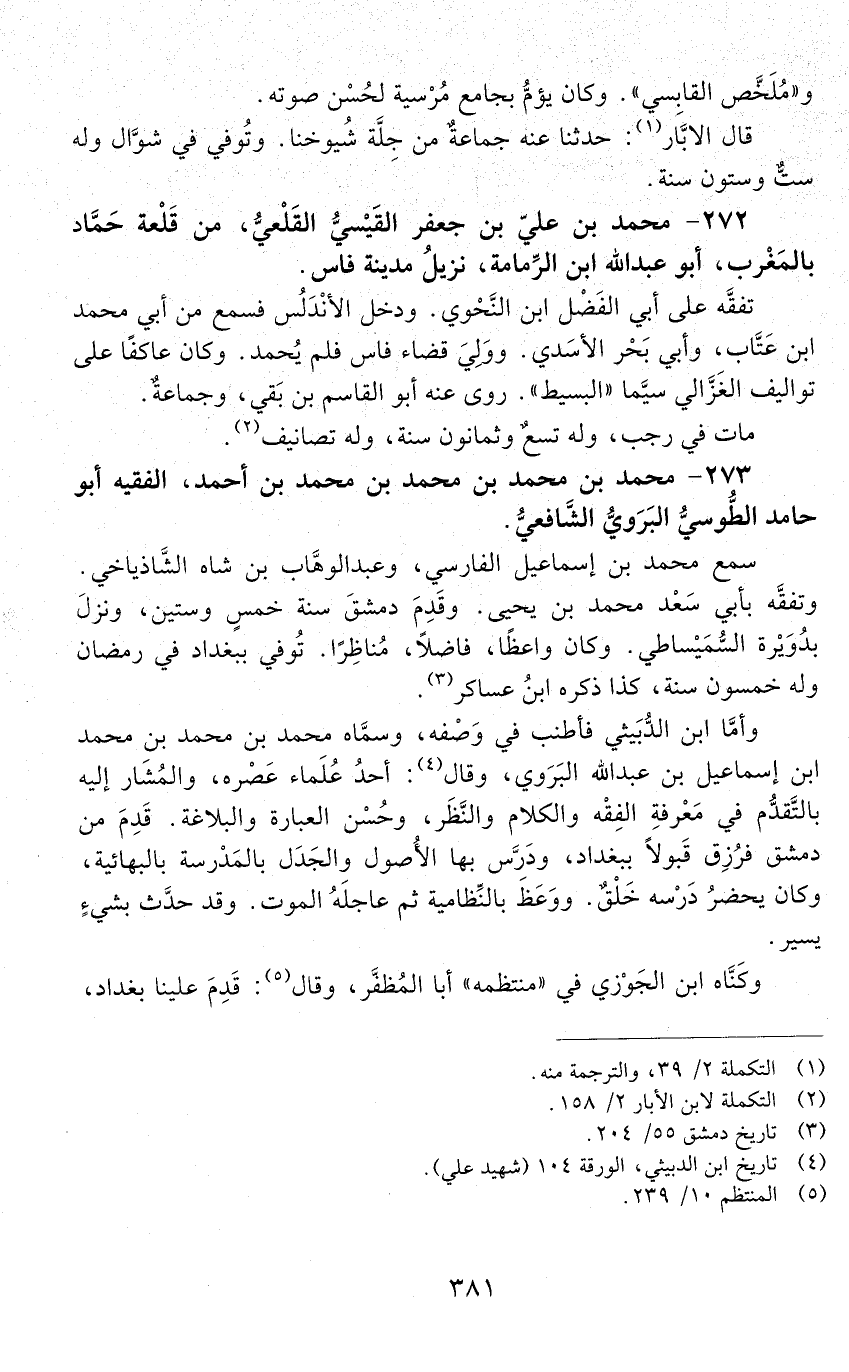 273 - مُحَمَّد بْن مُحَمَّد بْن مُحَمَّد بْن مُحَمَّد بْن أحمد. الفقيه أَبُو حامد الطُّوسيّ، البَرَويّ، الشّافعيّ. [المتوفى: 567 هـ]