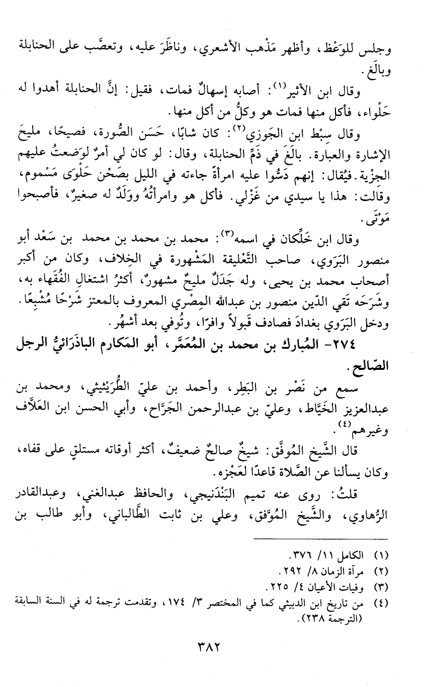 274 - المبارك بْن مُحَمَّد بْن المُعَمَّر، أَبُو المكارم الباذَرَائيّ، الرجل الصّالح. [المتوفى: 567 هـ]