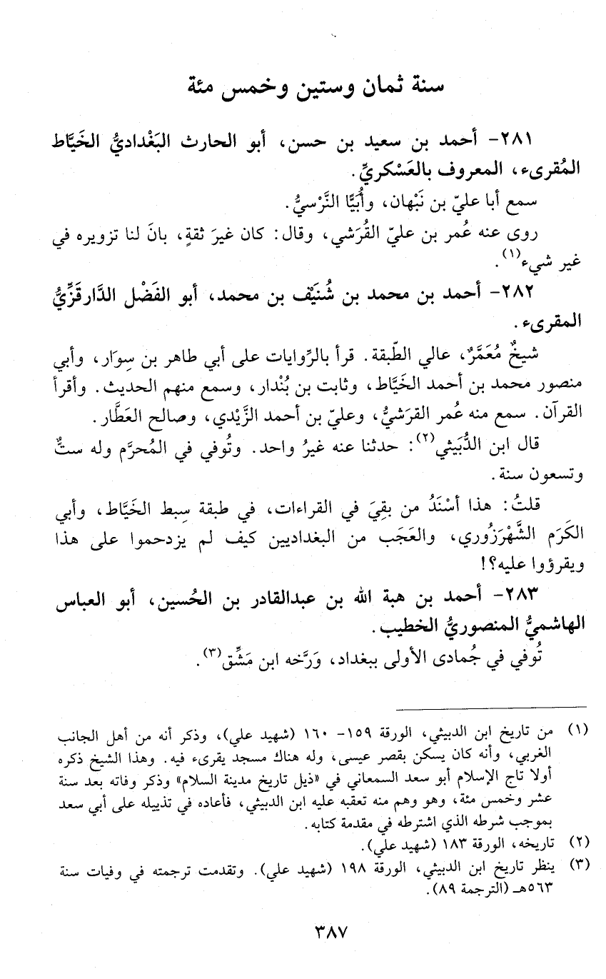 281 - أحمد بْن سَعِيد بْن حَسَن، أَبُو الحارث البغداديّ الخيّاط، المقرئ، المعروف بالعسكريّ. [المتوفى: 568 هـ]