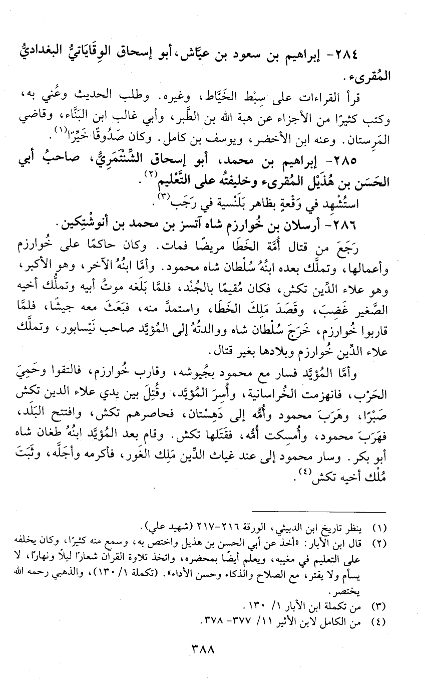 284 - إِبْرَاهِيم بْن سعود بْن عيّاش، أَبُو إِسْحَاق الوقاياتي، البغدادي، المقرئ. [المتوفى: 568 هـ]