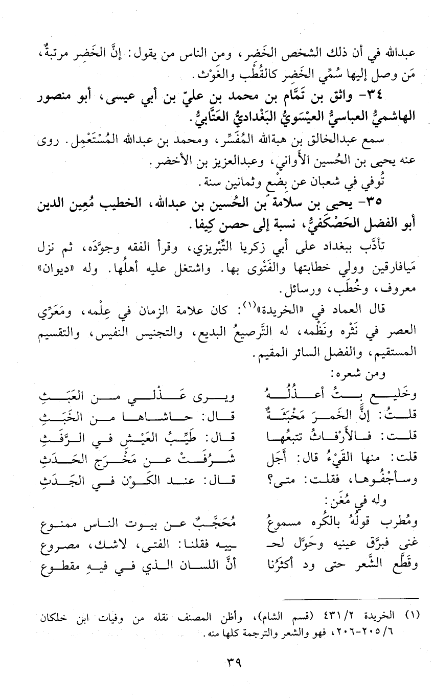 35 - يحيى بْن سلامة بْن الْحُسَيْن بْن عَبْد اللَّه، الخطيب، مُعِين الدِّين أبو الفضل الحَصْكَفِيّ، [المتوفى: 551 هـ]