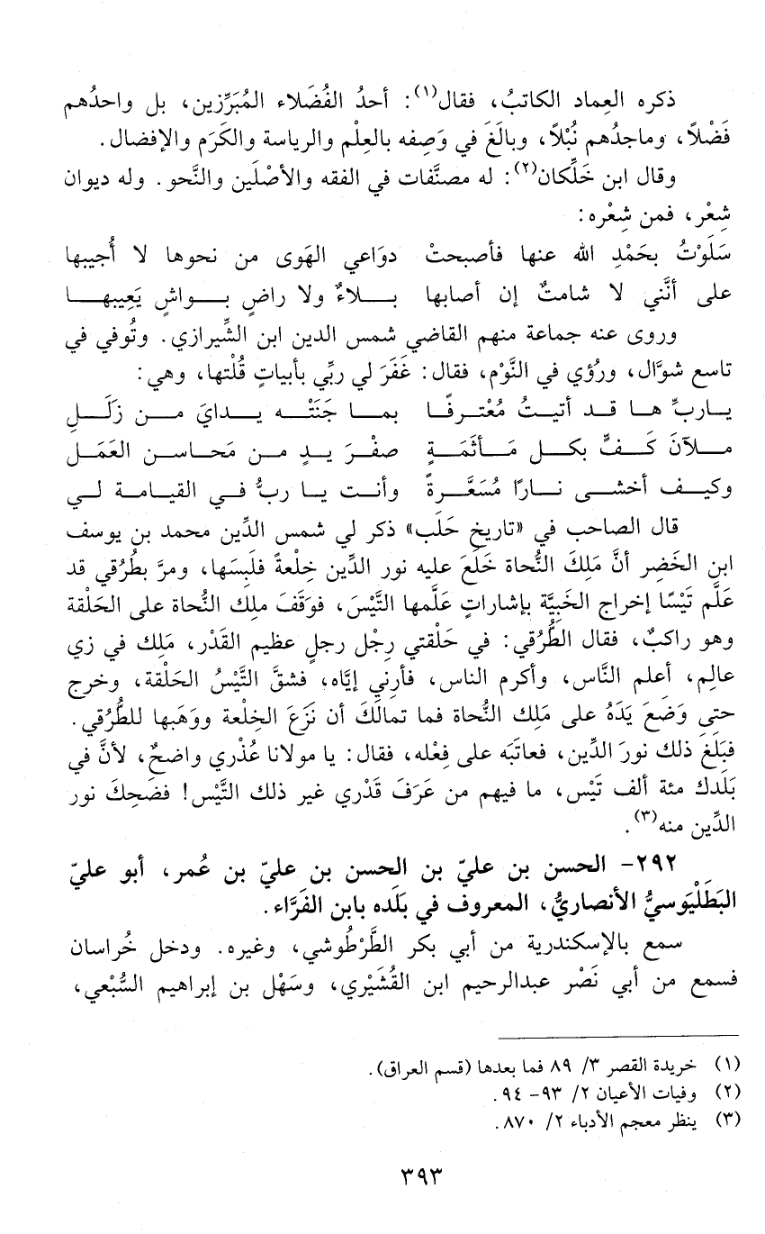 292 - الْحَسَن بْن علي بْن الْحَسَن بْن علي بْن عُمَر، أَبُو علي البطليوسيّ، الْأَنْصَارِيّ، المعروف فِي بلده بابن الفرّاء. [المتوفى: 568 هـ]