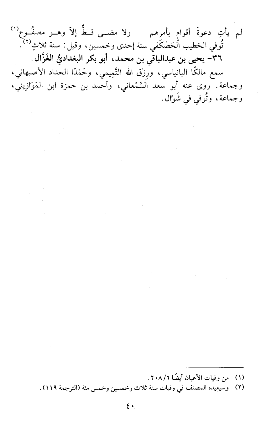 36 - يحيى بن عبد الباقي بن محمد، أبو بَكْر البغداديّ، الغزّال. [المتوفى: 551 هـ]