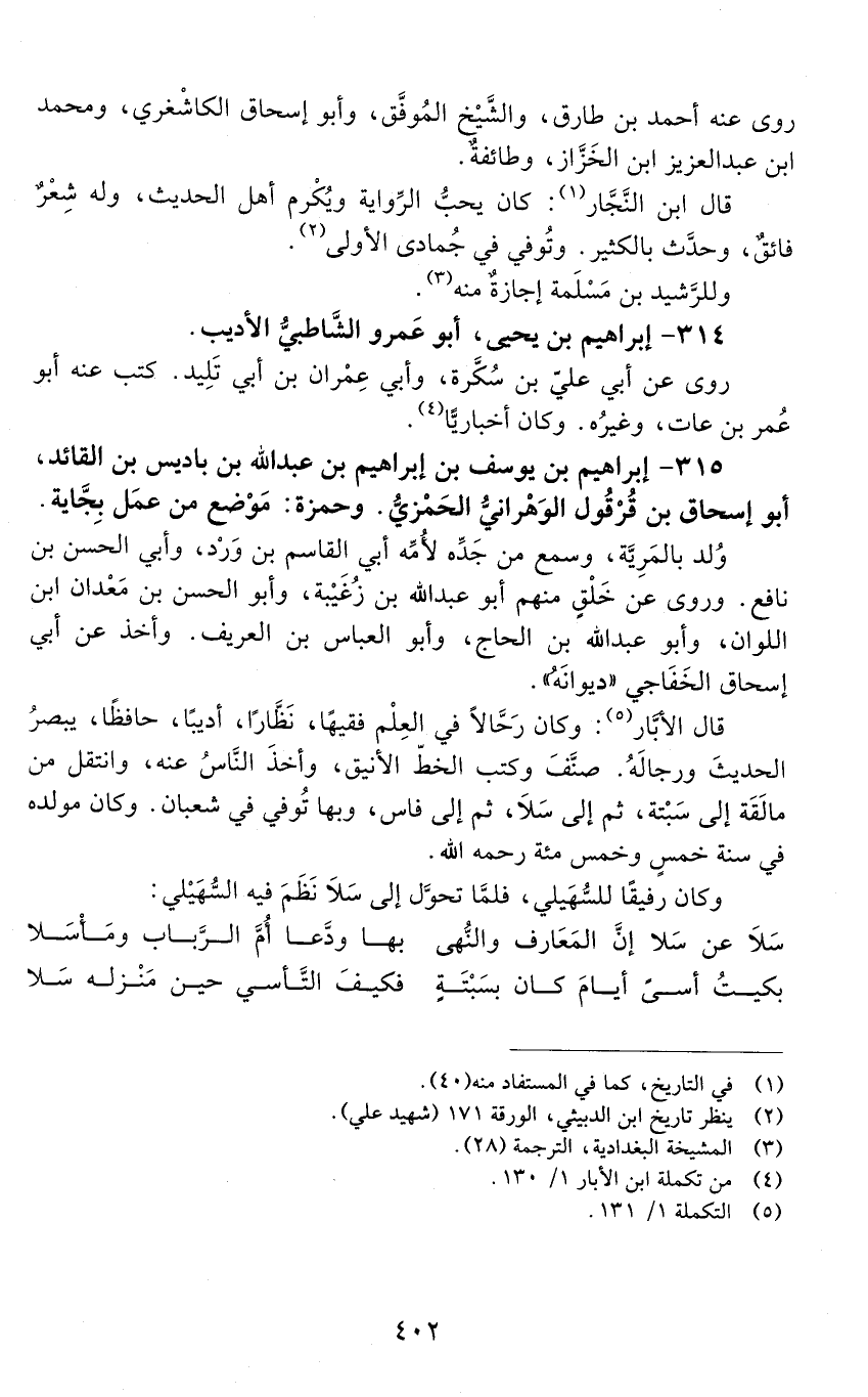 315 - إِبْرَاهِيم بْن يوسف بْن إِبْرَاهِيم بْن عَبْد الله بن باديس بن القائد، أَبُو إِسْحَاق بْن قُرْقُول الوَهْرانيّ، الحَمْزِيّ. [المتوفى: 569 هـ]