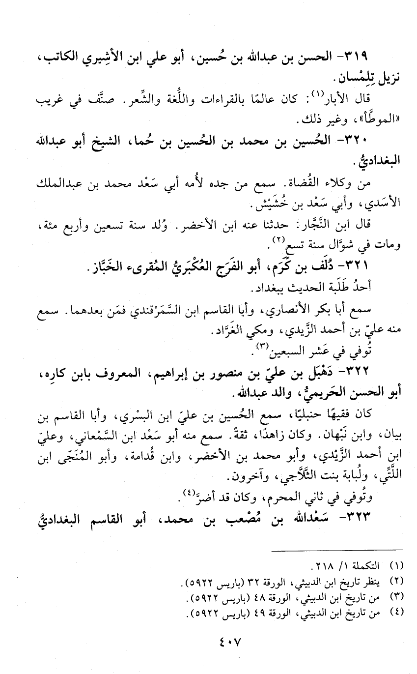 320 - الْحُسَيْن بْن مُحَمَّد بْن الْحُسَيْن بْن حَما. الشَّيْخ أَبُو عَبْد اللَّه البَغْداديُّ. [المتوفى: 569 هـ]