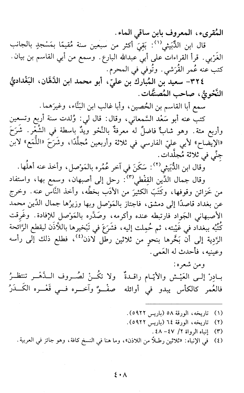 324 - سَعِيد بْن المبارك بْن علي، أبو محمد ابن الدّهّان البَغْداديُّ، النَّحْويّ، [المتوفى: 569 هـ]