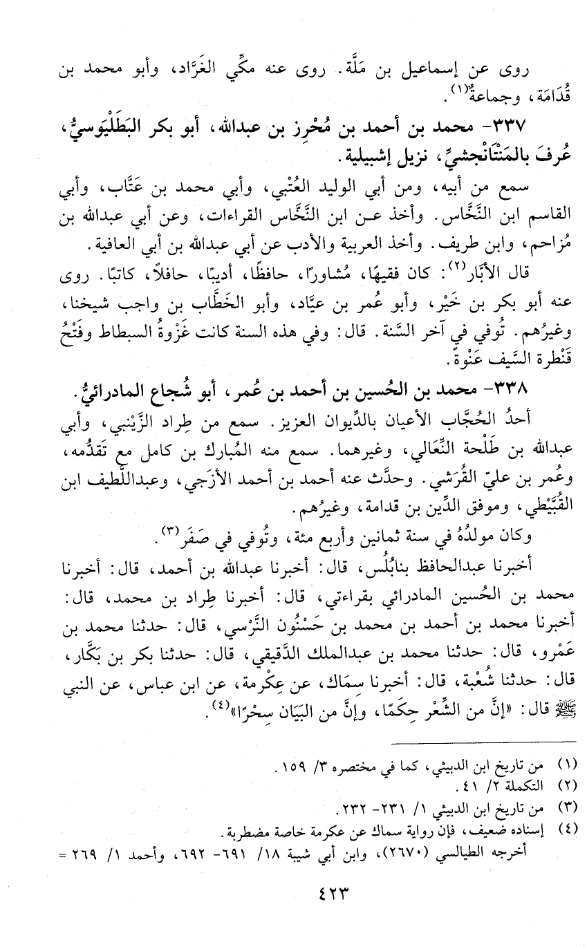 337 - مُحَمَّد بْن أَحْمَد بْن محرز بْن عَبْد اللَّه، أَبُو بَكْر البَطَلْيُوسيّ، عُرِف بالمَنْتَانْجِشِيّ، [المتوفى: 569 هـ]