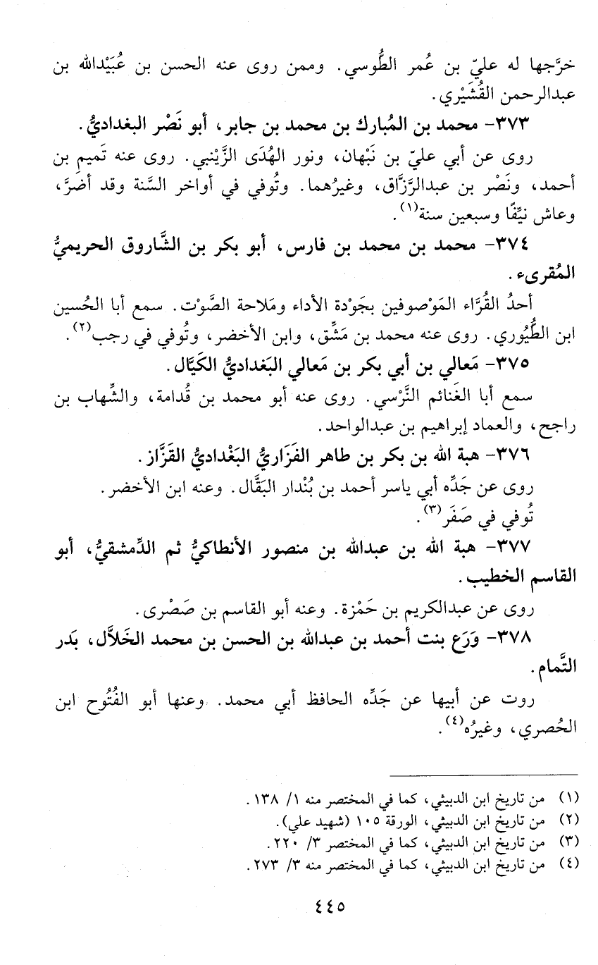 376 - هبة الله بن بَكْر بْن طاهر الفَزَاريّ، البَغْداديُّ، القَزّاز. [المتوفى: 570 هـ]
