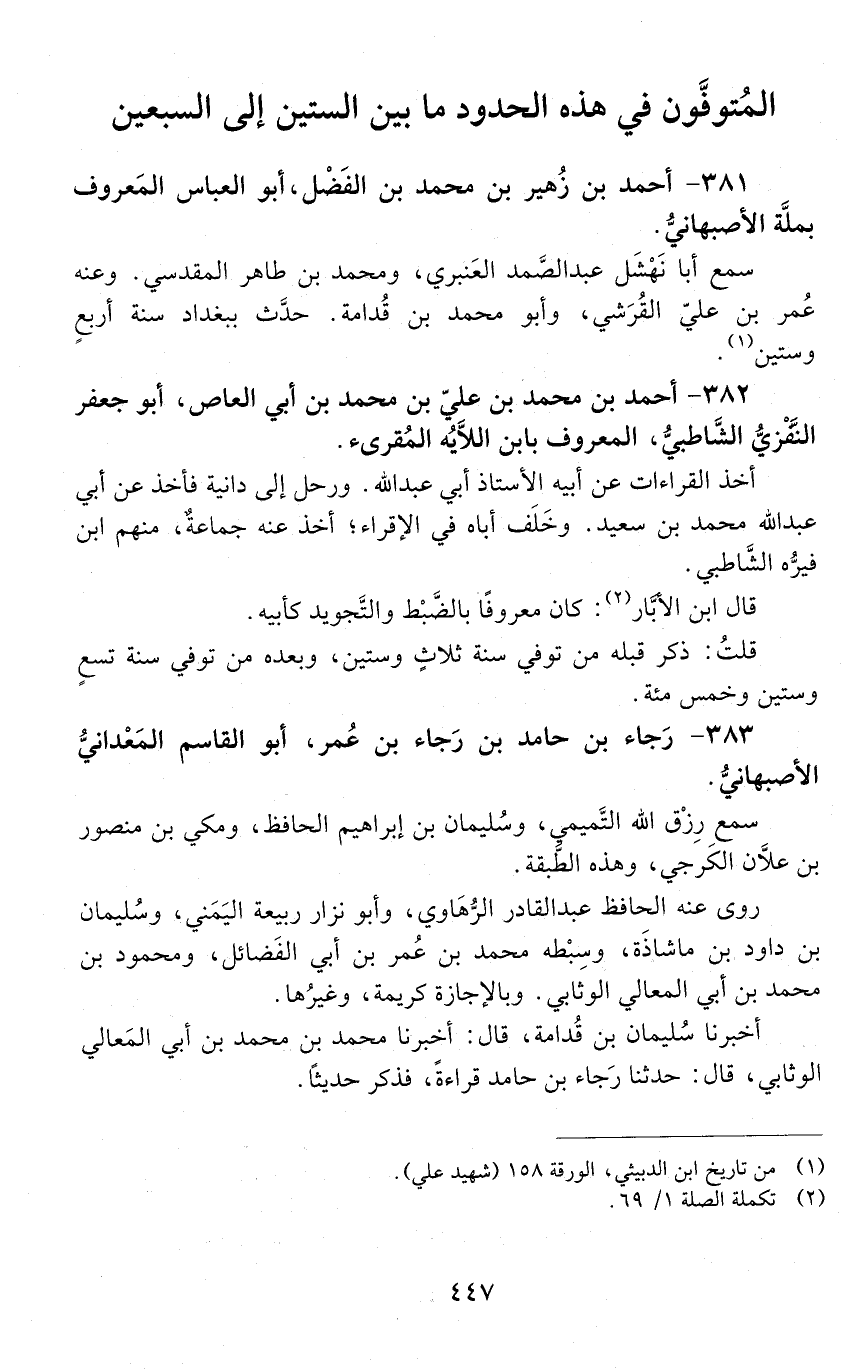 383 - رجاء بْن حامد بْن رجاء بْن عُمَر، أَبُو القاسم المعدانيّ الإصبهانيّ. [الوفاة: 561 - 570 هـ]