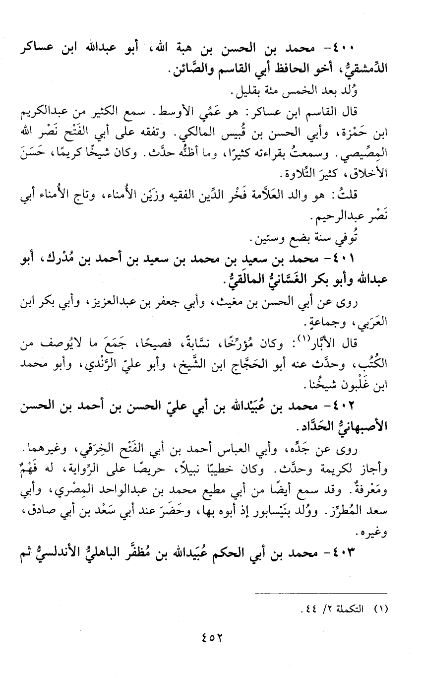400 - مُحَمَّد بْن الْحَسَن بْن هِبَة اللَّه، أَبُو عبد الله ابن عساكر الدمشقي، [الوفاة: 561 - 570 هـ]