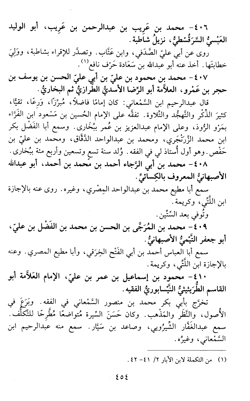 408 - مُحَمَّد بْن أَبِي الرجاء أَحْمَد بْن مُحَمَّد بْن أَحْمَد، أَبُو عَبْد اللَّه الإصبهانيّ المعروف بالكسائيّ. [الوفاة: 561 - 570 هـ]