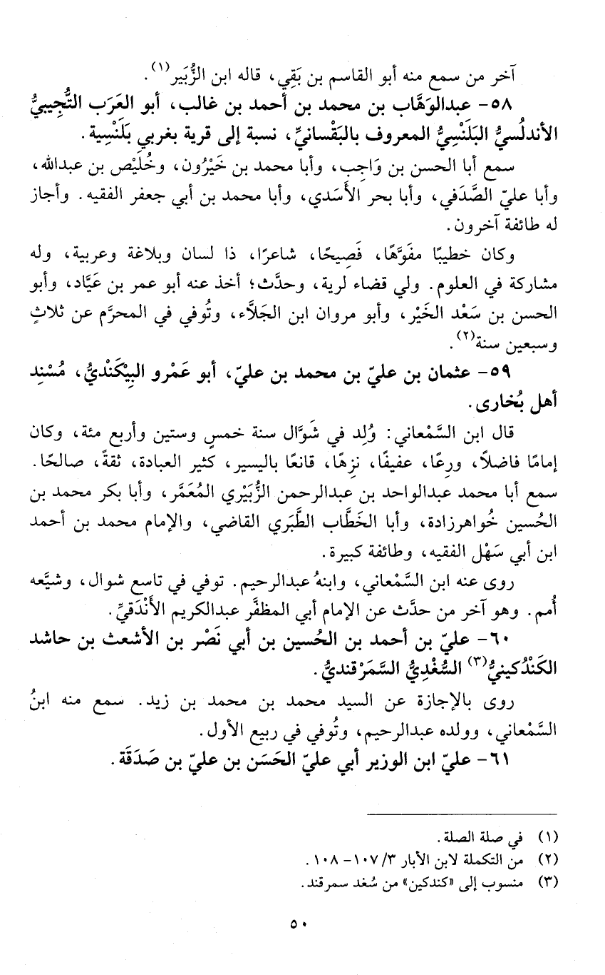 58 - عَبْد الوهاب بْن مُحَمَّد بْن أَحْمَد بْن غالب، أبو العَرَب التُّجَيْبيّ، الأندلُسيّ، البَلَنْسيّ، المعروف بالبقسانيّ، [المتوفى: 552 هـ]