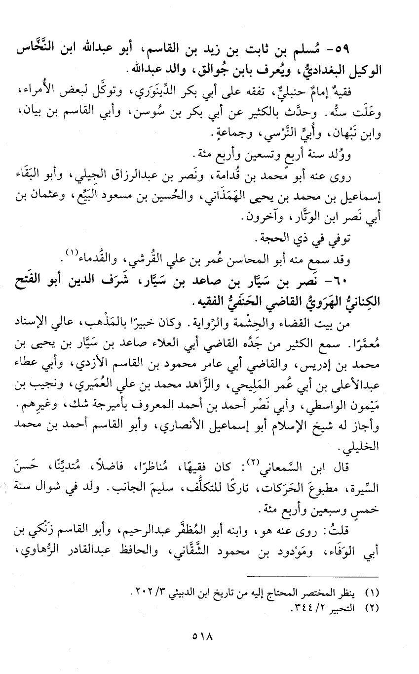 59 - مسلم بن ثابت بن زيد بن القاسم، أبو عبد الله ابن النخاس الوكيل البغدادي، ويُعرف بابن جُوالِق [المتوفى: 572 هـ]