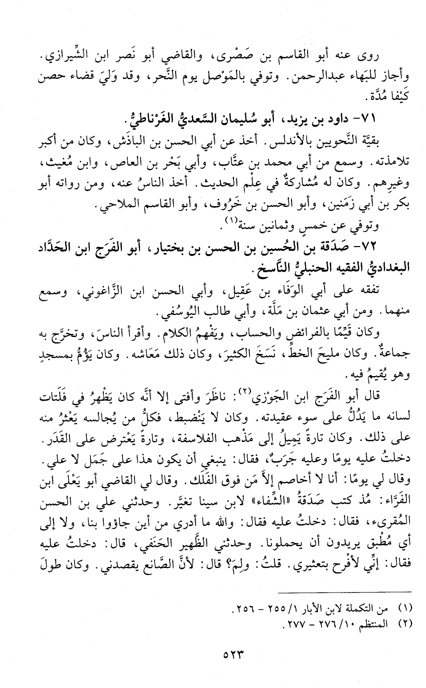 72 - صَدَقَة بْن الْحُسَيْن بْن الْحَسَن بْن بختيار، أبو الفرج ابن الحداد البغدادي، الفقيه، الحنبلي، الناسخ. [المتوفى: 573 هـ]
