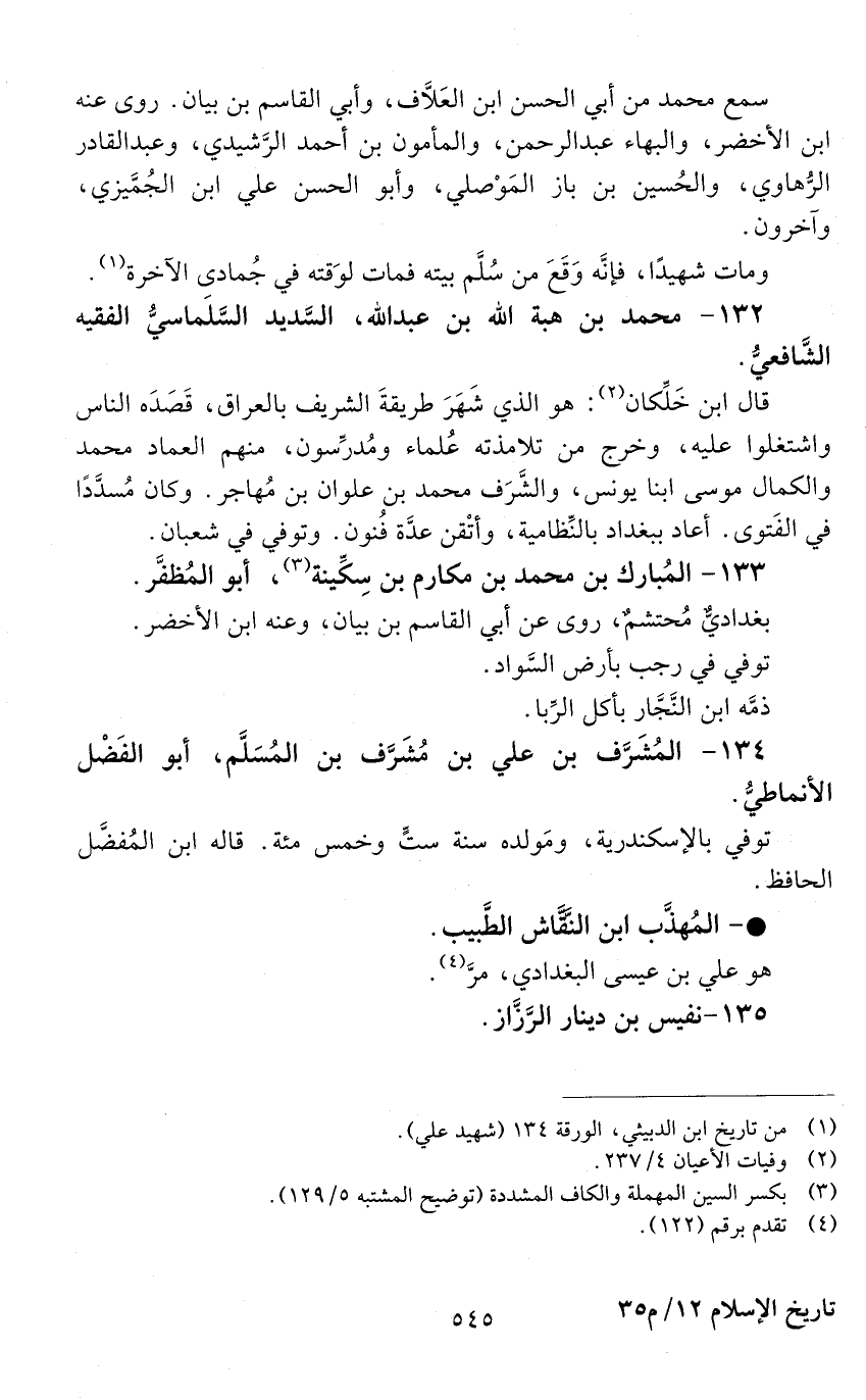 132 - مُحَمَّد بْن هبة اللَّه بْن عَبْد اللَّه، السدِيد، السلَمَاسي، الفقيه الشافعي. [المتوفى: 574 هـ]