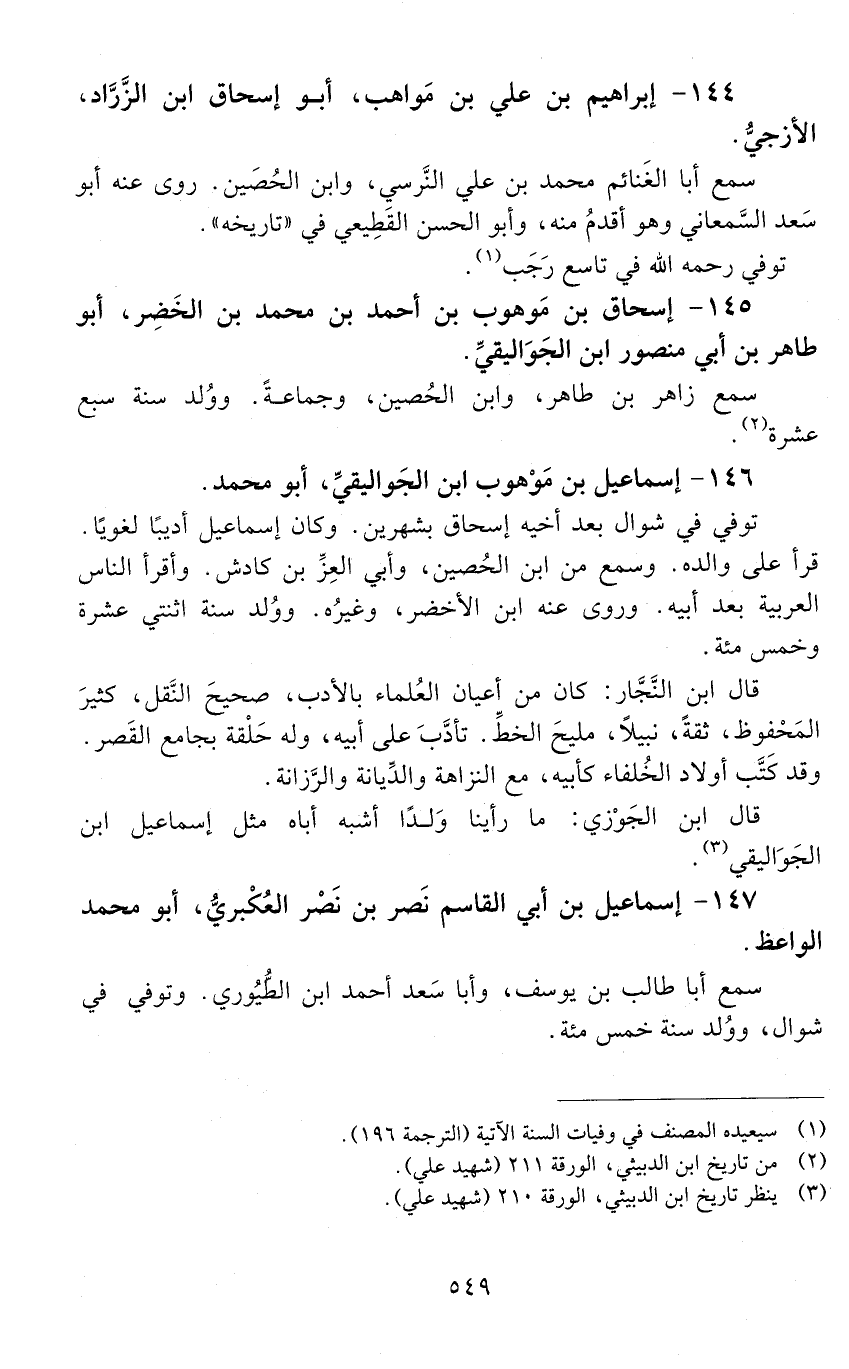 144 - إِبْرَاهِيم بْن علي بْن مواهب، أَبُو إِسْحَاق ابْن الزراد الأزجي. [المتوفى: 575 هـ]
