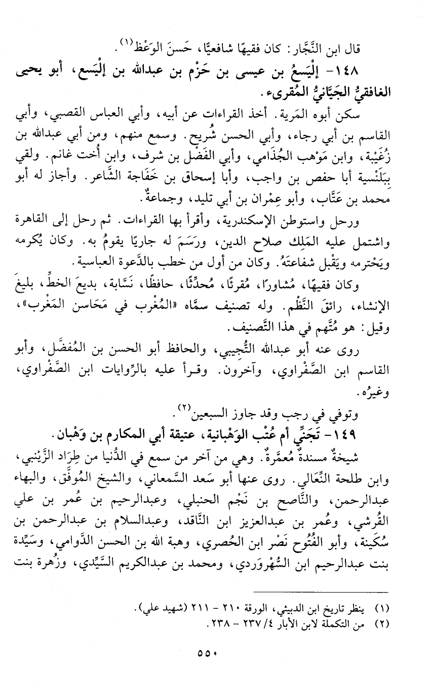 148 - اليسَع بْن عيسى بْن حَزْم بْن عَبْد اللَّه بْن اليَسَع، أَبُو يحيى الغافقي، الجياني، المقرئ. [المتوفى: 575 هـ]
