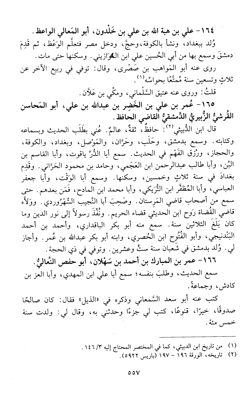 164 - عَلِيّ بْن هبة اللَّه بْن علي بْن خلدون، أَبُو المعالي الواعظ. [المتوفى: 575 هـ]