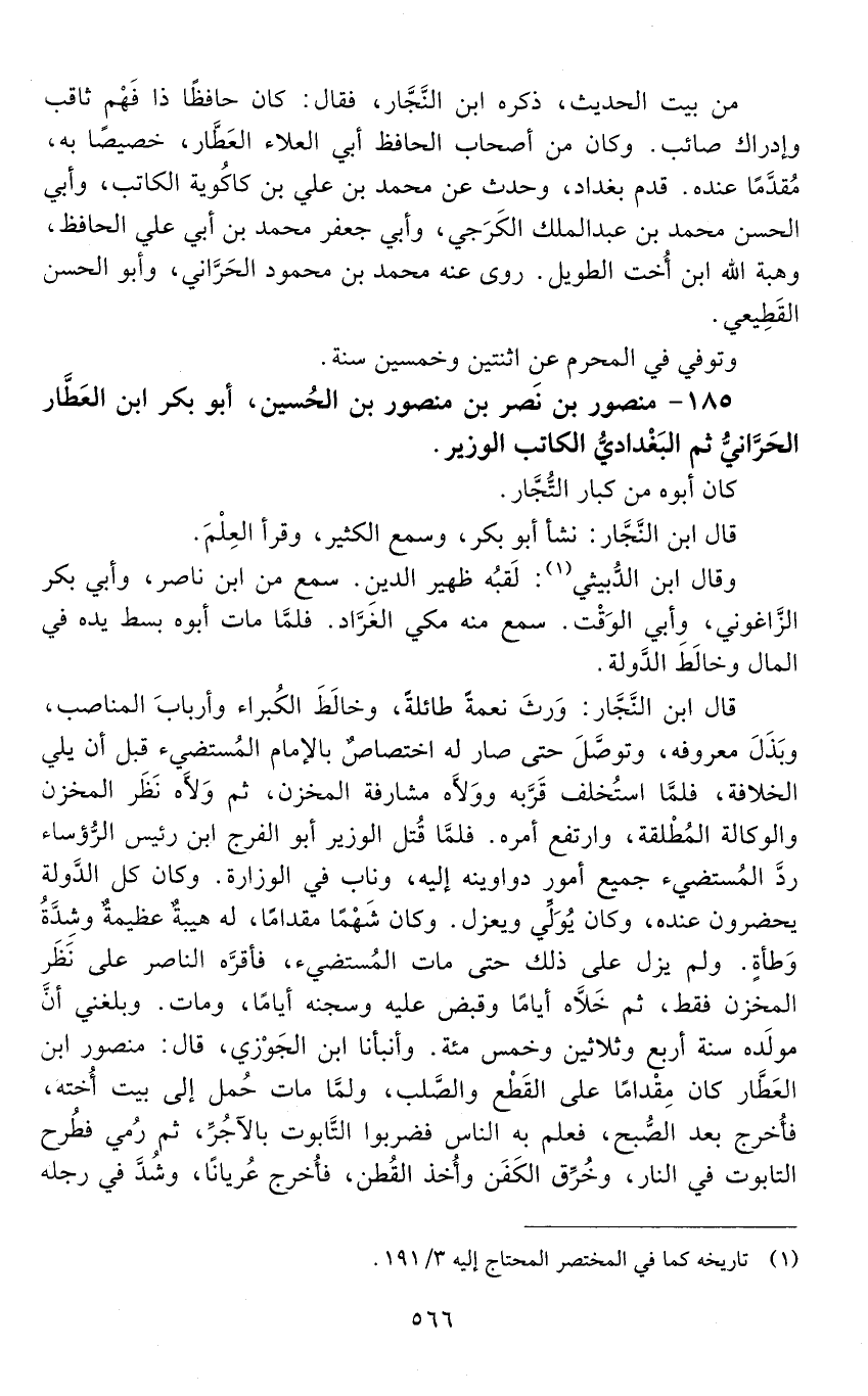185 - منصور بْن نصر بْن منصور بْن الحسين، أبو بكر ابن العطار الحرّاني، ثم البغدادي، الكاتب الوزير. [المتوفى: 575 هـ]