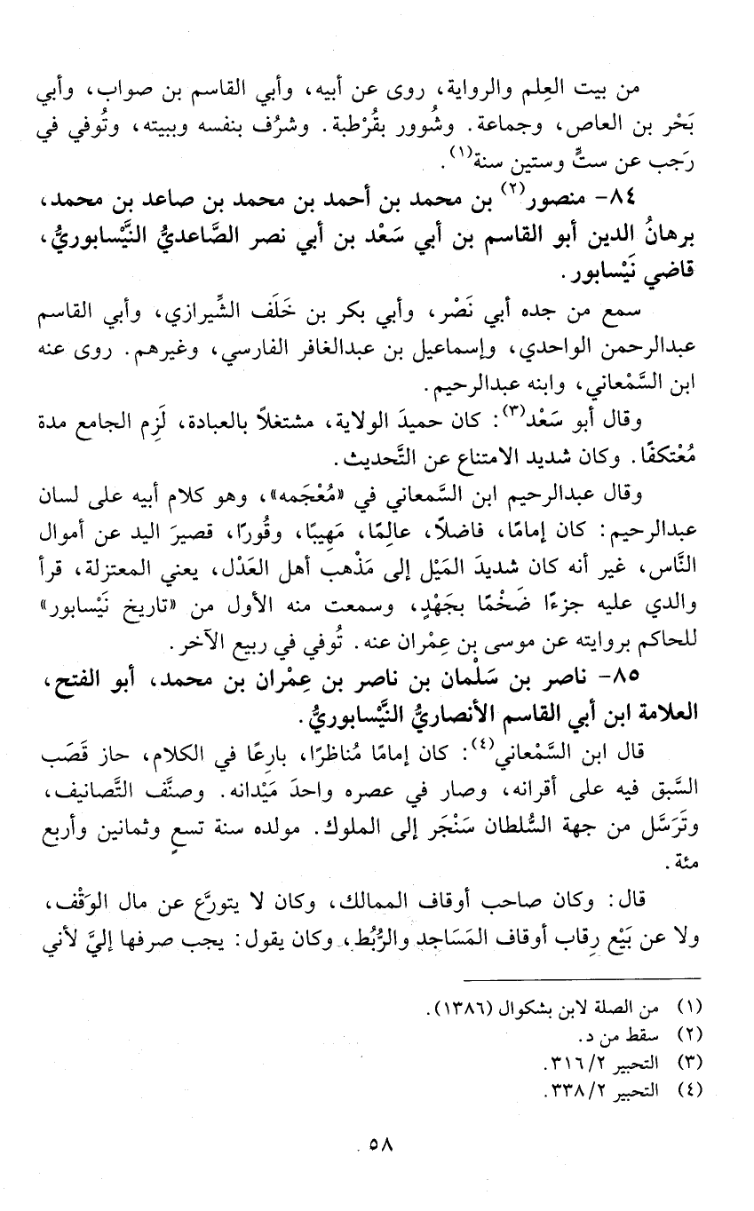 84 - مَنْصُور بن محمد بن أحمد بن محمد بن صاعد بْن مُحَمَّد، برهان الدِّين أبو القَاسِم بْن أبي سَعْد بْن أبي نصر الصّاعديّ، النَّيْسَابُوريّ، قاضي نَيْسابور. [المتوفى: 552 هـ]