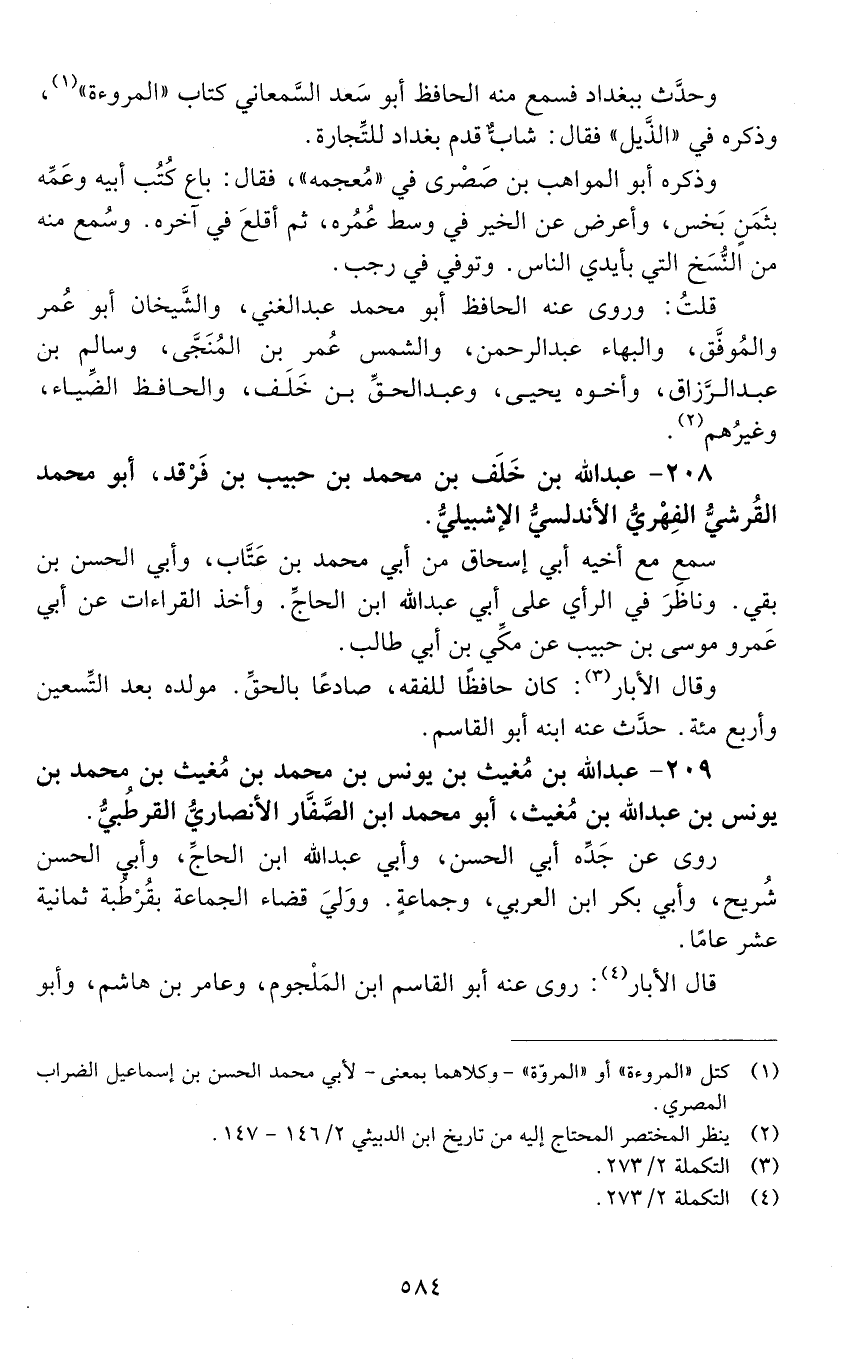 209 - عَبْد اللَّه بْن مُغِيث بْن يونس بْن مُحَمَّد بْن مغيث بْن مُحَمَّد بْن يونس بْن عَبْد اللَّه بْن مغيث، أبو محمد ابن الصفار الْأَنْصَارِيّ، القُرْطُبي. [المتوفى: 576 هـ]