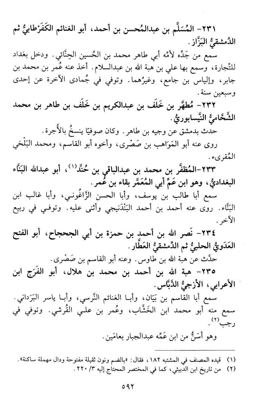 231 - المسلم بْن عَبْد المحسن بْن أَحْمَد، أَبُو الغنائم الكَفَرْطابيّ، ثم الدمشقي، البزاز. [المتوفى: 576 هـ]