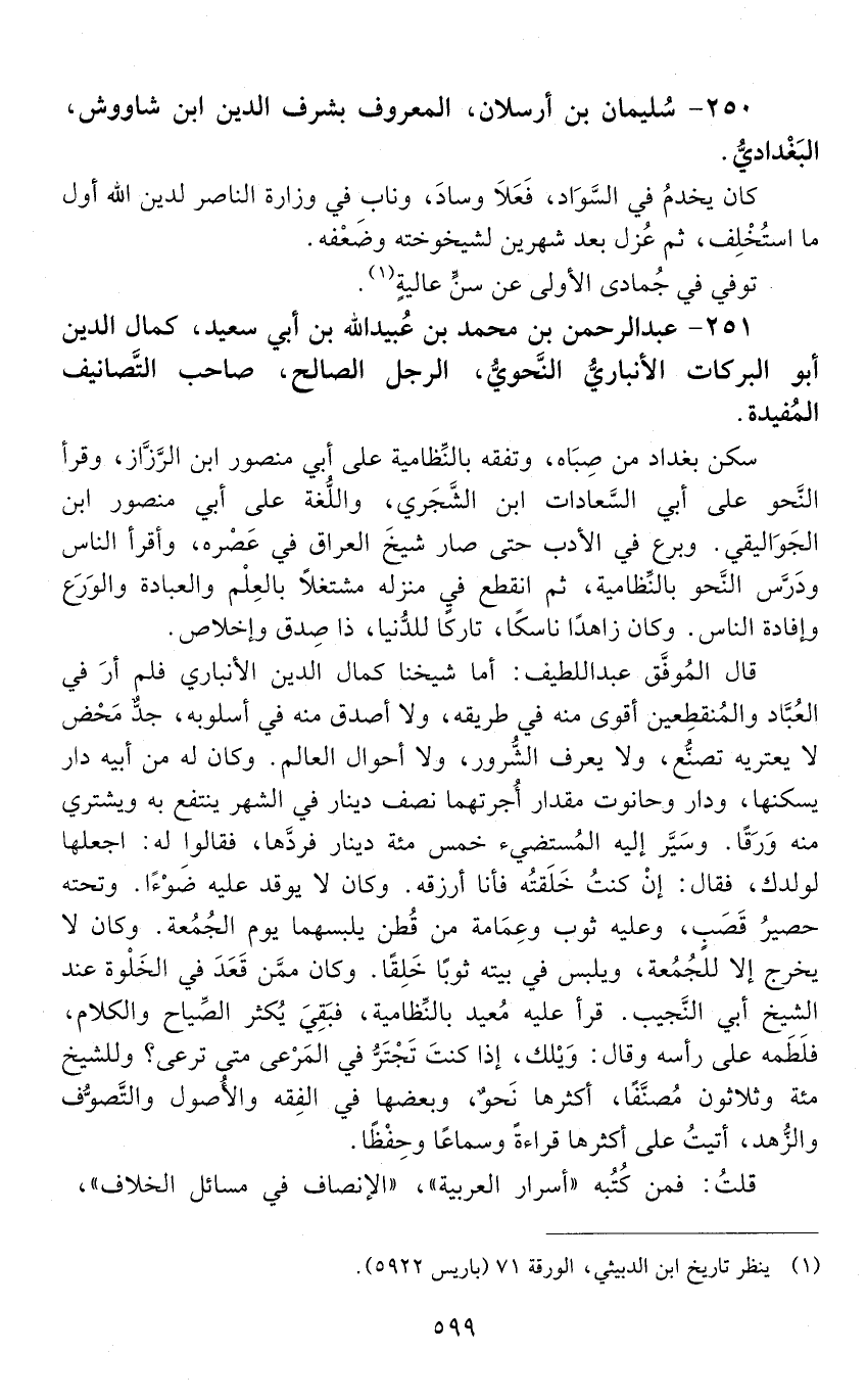 251 - عَبْد الرَّحْمَن بْن مُحَمَّد بْن عُبَيْد اللَّه بْن أَبِي سَعِيد، كمال الدين أَبُو البركات الأنباري النحوي، الرجل الصالح، [المتوفى: 577 هـ]