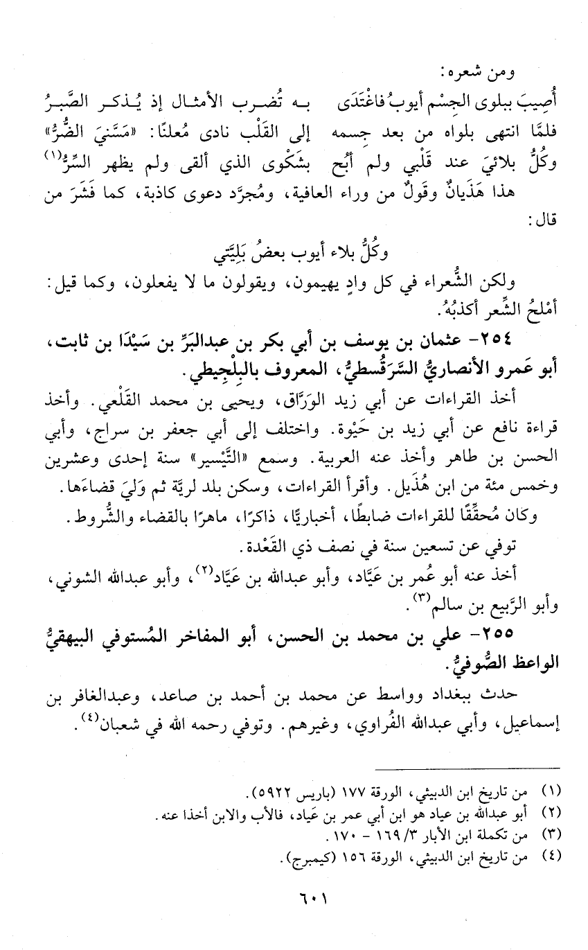 254 - عثمان بْن يوسف بْن أَبِي بَكْر بن عبد البرّ بن سيّدا بْن ثابت، أَبُو عَمْرو الْأَنْصَارِيّ، السرقسطي، المعروف بالبلجيطي. [المتوفى: 577 هـ]