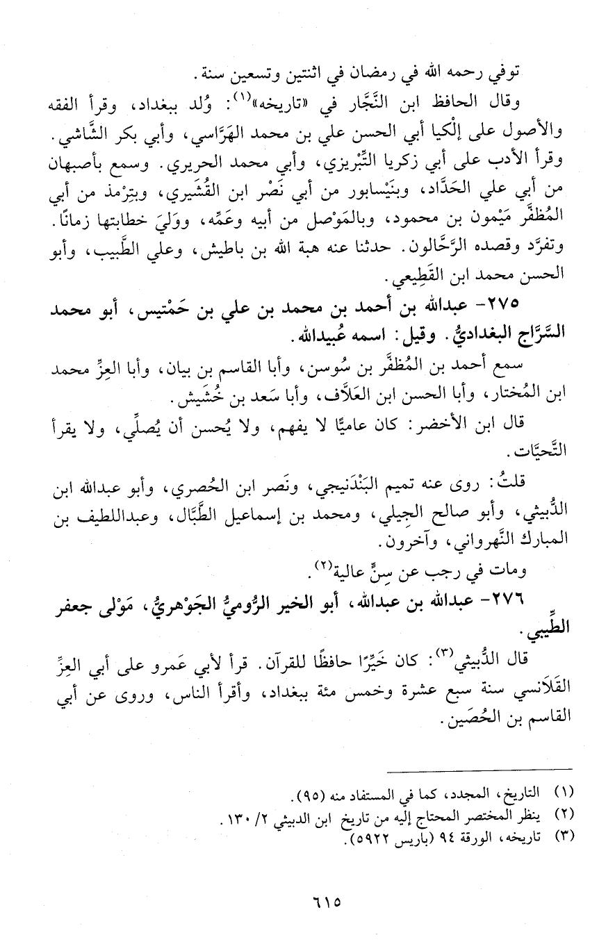 275 - عَبْد اللَّه بْن أَحْمَد بْن مُحَمَّد بْن علي بن حمتيس، أَبُو مُحَمَّد السراج البغدادي. وقيل: اسمه عُبَيْد اللَّه. [المتوفى: 578 هـ]