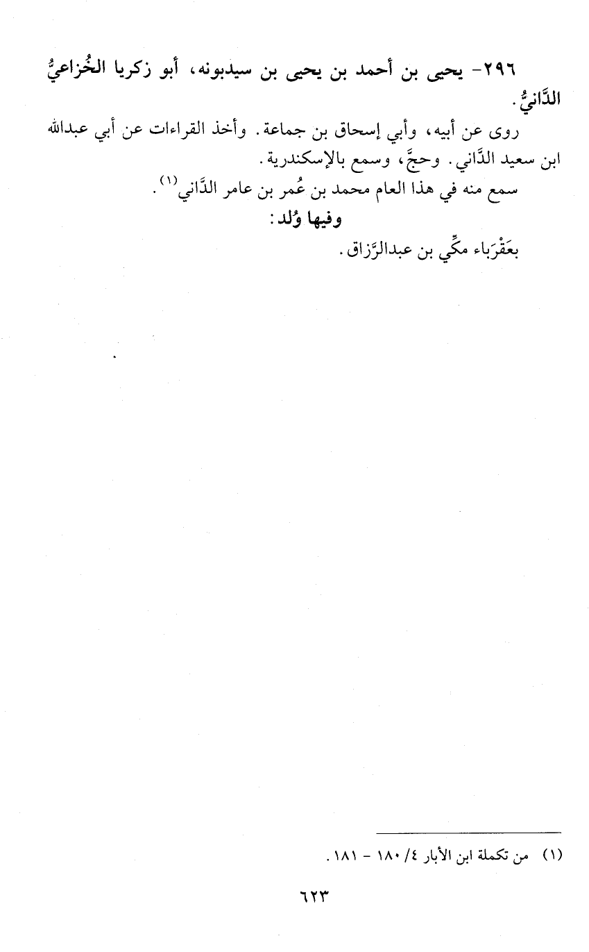 296 - يحيى بْن أَحْمَد بْن يحيى بْن سيدبونه، أَبُو زكريا الخُزَاعي، الداني. [المتوفى: 578 هـ]