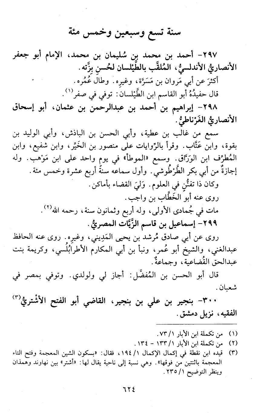 297 - أَحْمَد بْن مُحَمَّد بْن سُلَيْمَان بْن مُحَمَّد، الْإِمَام أَبُو جَعْفَر الْأَنْصَارِيّ، الأندلسي، الملقب بالطيلسان؛ لِحُسْنِ بِزّته. [المتوفى: 579 هـ]
