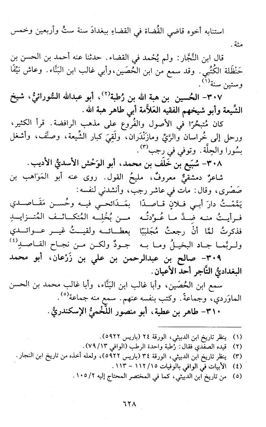 307 - الْحُسَيْن بْن هبة اللَّه بن رُطبة، أَبُو عَبْد اللَّه السّورائيّ، [المتوفى: 579 هـ]