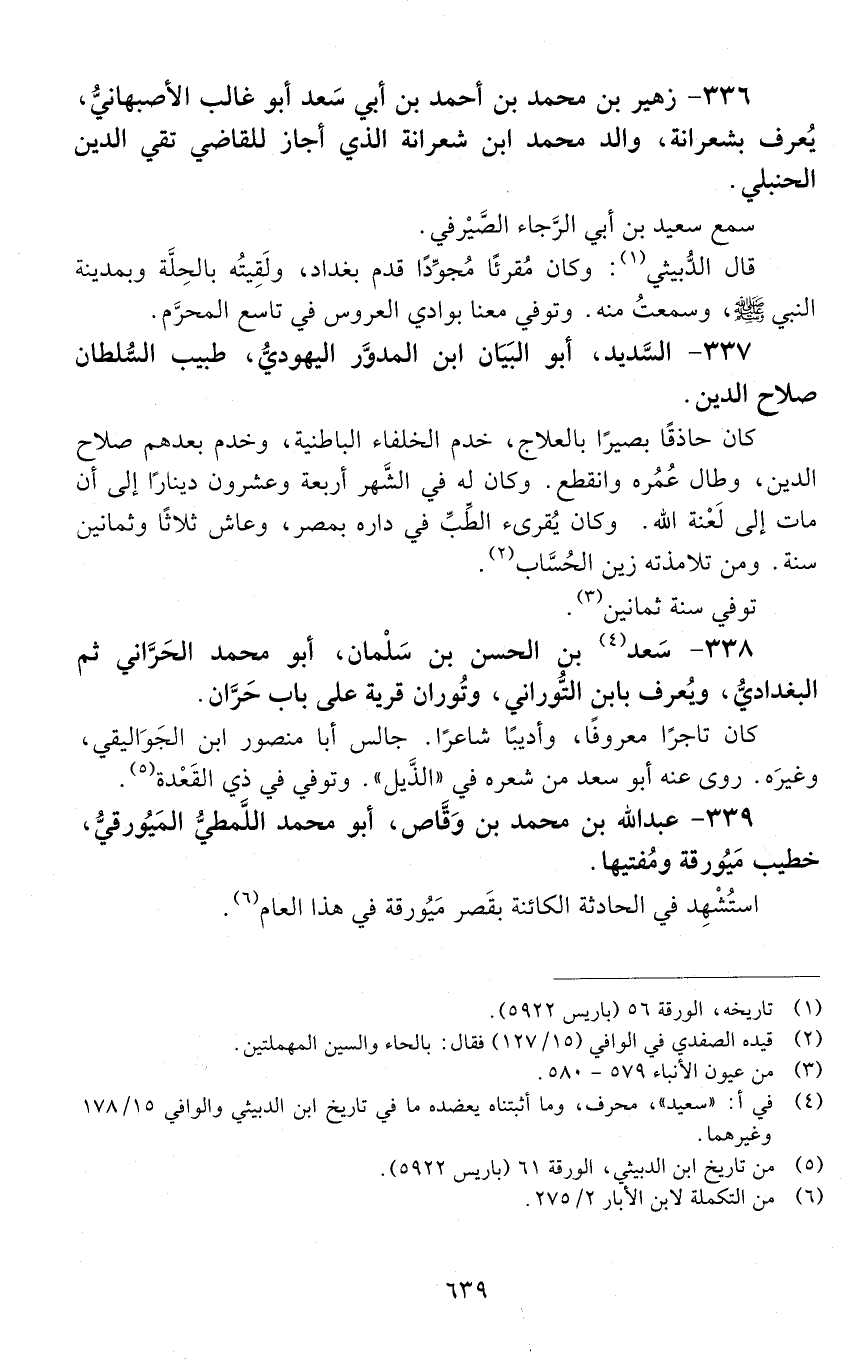 338 - سعد بْن الْحَسَن بْن سلمان، أَبُو مُحَمَّد الحراني، ثم البغدادي، ويُعرف بابن التوراني. [المتوفى: 580 هـ]