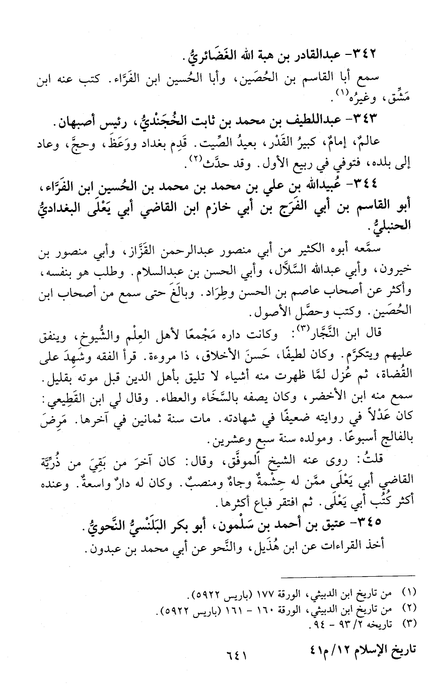 344 - عُبَيْد الله بن علي بن محمد بن محمد بن الحسين ابن الفرّاء، أبو القاسم بن أبي الفرج بن أَبِي خازم ابْن القاضي أَبِي يَعْلَى البغدادي، الحنبلي. [المتوفى: 580 هـ]