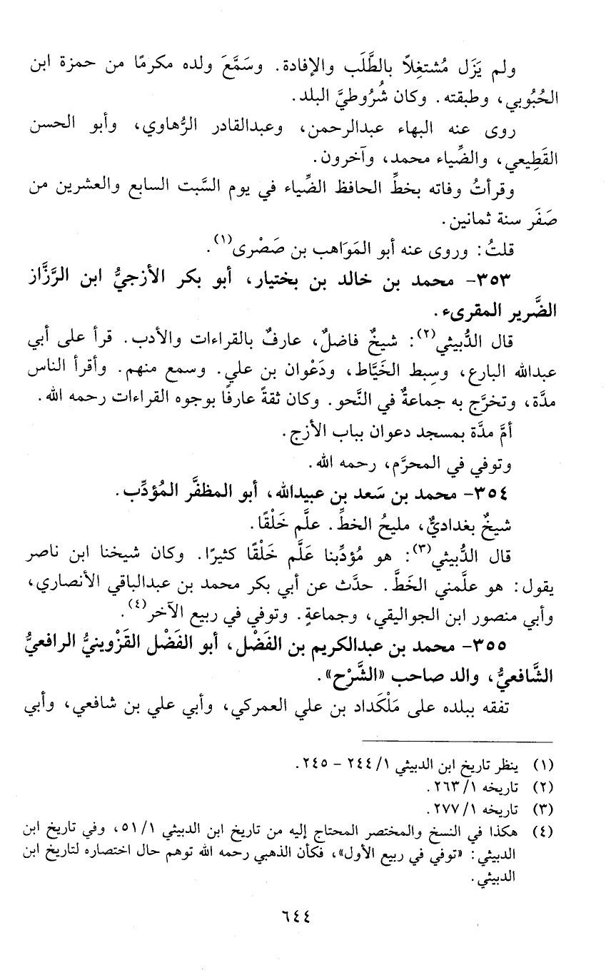 353 - مُحَمَّد بْن خَالِد بْن بختيار، أَبُو بَكْر الأزَجي ابْن الرزاز، الضرير، المقرئ. [المتوفى: 580 هـ]