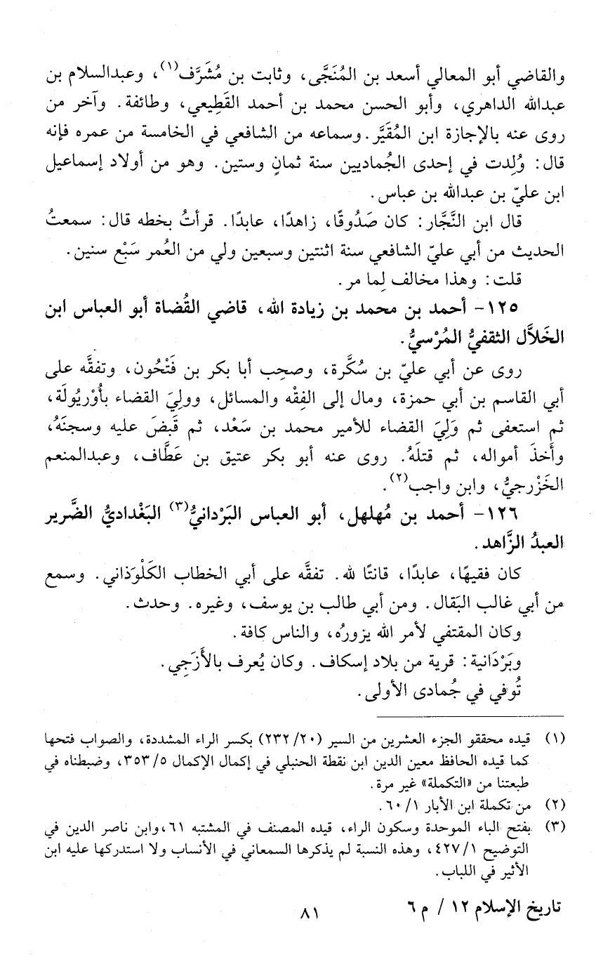 126 - أحمد بن مهلهل، أبو الْعَبَّاس البَرْدانيّ، البغداديّ، الضّرير، العبد الزّاهد. [المتوفى: 554 هـ]