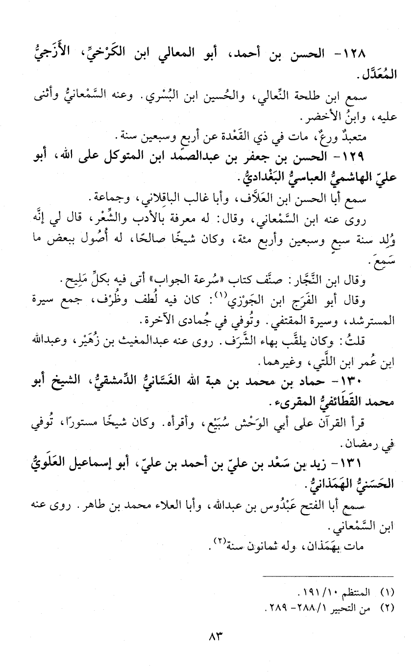 129 - الحسن بن جعفر بن عبد الصمد ابن المتوكّل على اللَّه، أبو عليّ الهاشميّ، الْعَبَّاسيّ، البغدادي. [المتوفى: 554 هـ]
