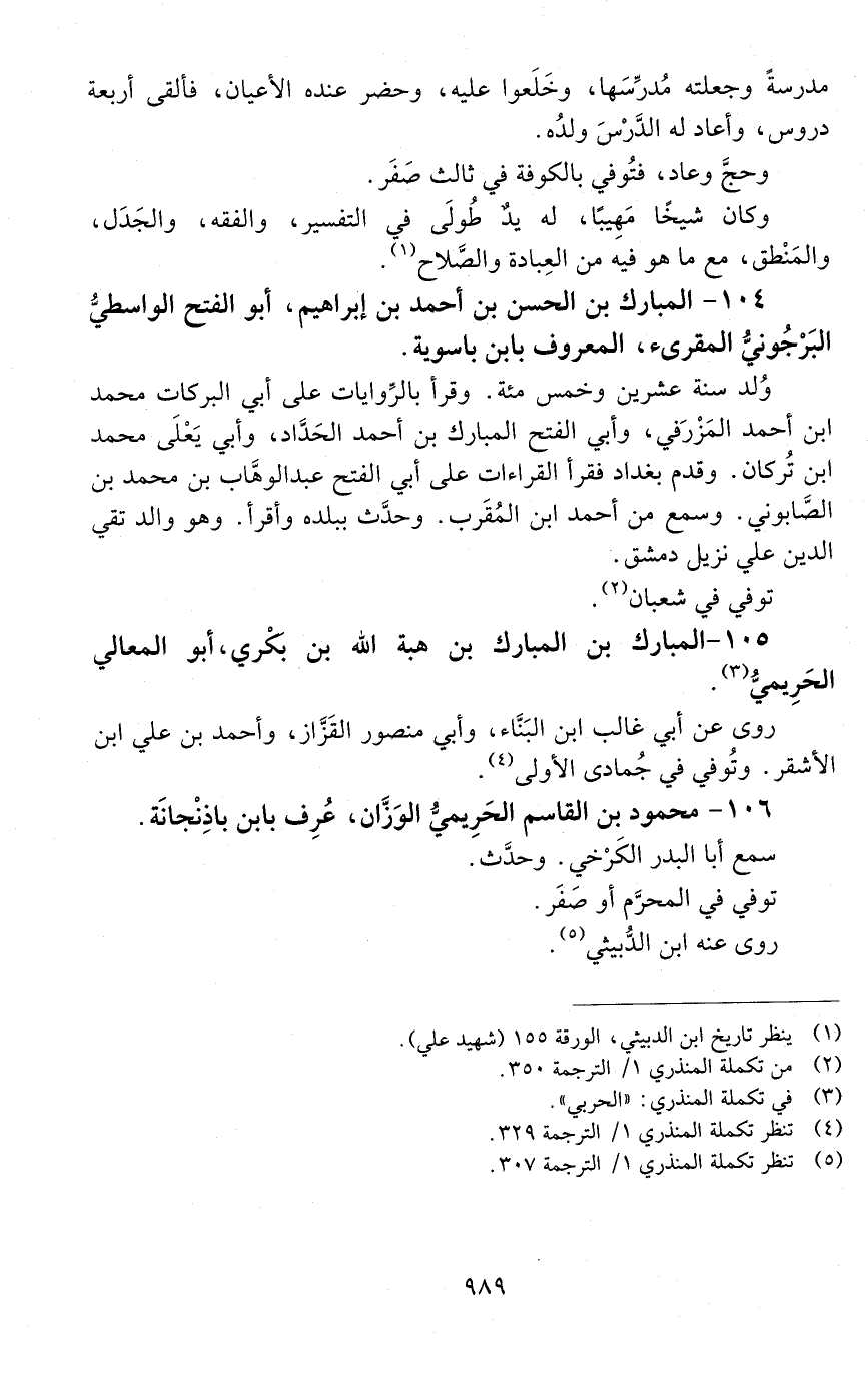 104 - الْمُبَارَك بْن الْحَسَن بْن أَحْمَد بْن إِبْرَاهِيم، أبو الفتح الواسطيّ، البَرجُوني، الْمُقْرِئ المعروف بابن باسوَيه. [المتوفى: 592 هـ]