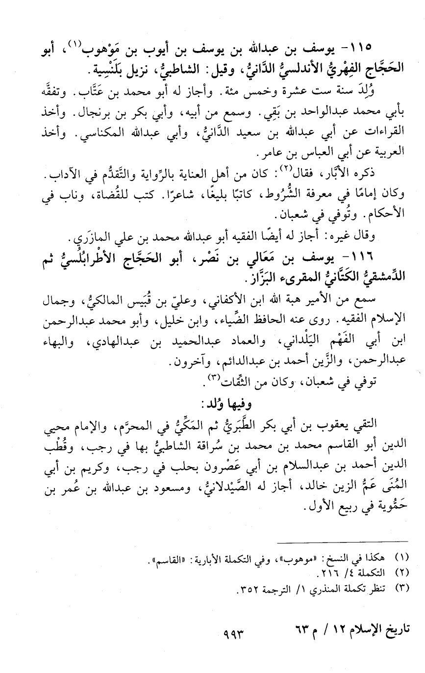 115 - يوسف بْن عَبْد اللَّه بْن يوسف بْن أيّوب بْن موهوب، أبو الحَجّاج الفِهري، الأندلسيّ، الدّانيّ، وقيل الشّاطبيّ، [المتوفى: 592 هـ]