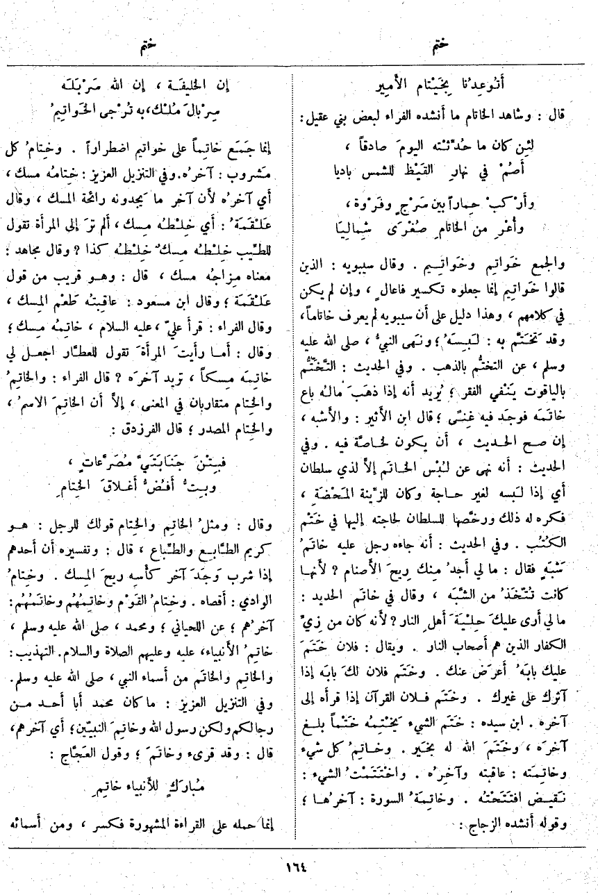 قَالَ: وَشَاهِدُ الْخَاتَامِ مَا أَنشده الْفَرَّاءُ لِبَعْضِ بَنِي عُقَيْلٍ: