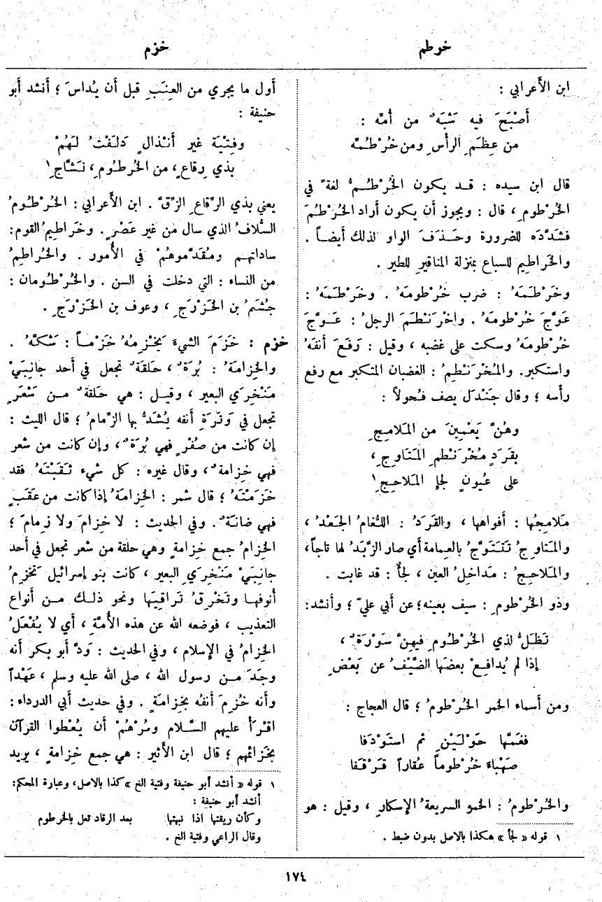 (2). قوله [أَنْشَدَ أَبو حَنِيفَةَ وَفِتْيَةٌ إلخ] كذا بالأَصل، وعبارة المحكم: أنشد أَبو حنيفة: