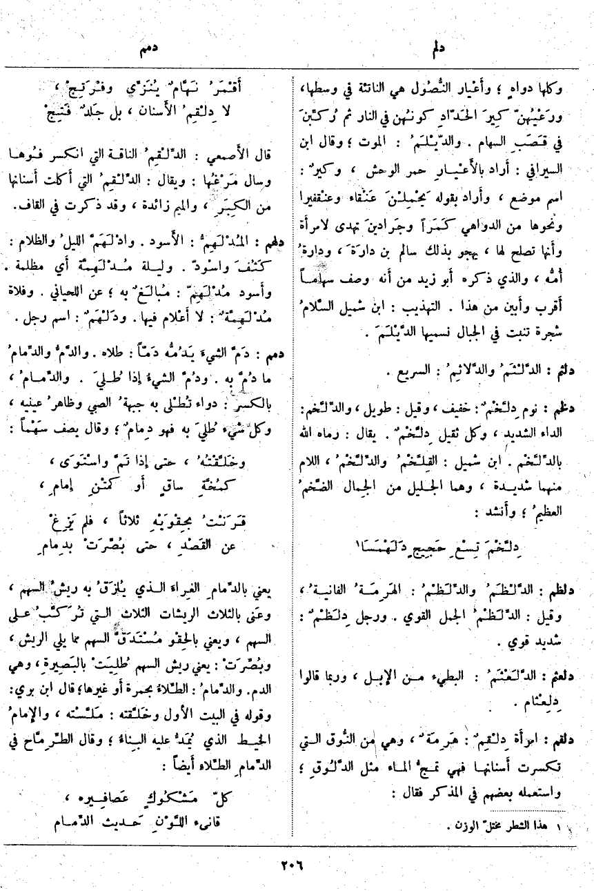 دلخم: نَوْمٌ دِلَّخْمٌ: خَفِيفٌ، وَقِيلَ: طَوِيلٌ، والدِّلَّخم: الدَّاءُ الشَّدِيدُ، وَكُلُّ ثَقِيلٍ دِلَّخْمٌ. يُقَالُ: رَمَاهُ اللَّهُ بالدِّلَّخْم. ابْنُ شُمَيْلٍ: القِلَّخْمُ والدِّلَّخْمُ، اللَّامُ مِنْهُمَا شَدِيدَةٌ، وَهُمَا الْجَلِيلُ مِنَ الجِمال الضَّخمُ العظيمُ؛ وأَنشد: