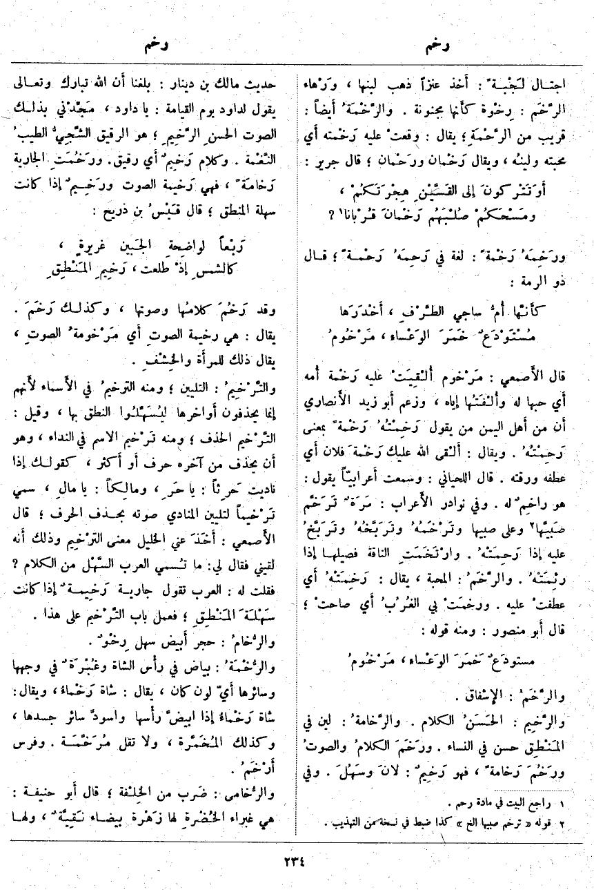 والرَّخَمُ: الإِشفاق. والرَّخِيم: الحَسَنُ الْكَلَامِ. والرَّخامةُ: لِينٌ فِي المَنْطِق حُسْنٌ فِي النِّسَاءِ. ورَخَمَ الكلامُ والصوتُ ورَخُمَ رَخامةً، فَهُوَ رَخِيمٌ: لانَ وسَهُلَ. وَفِي حَدِيثِ