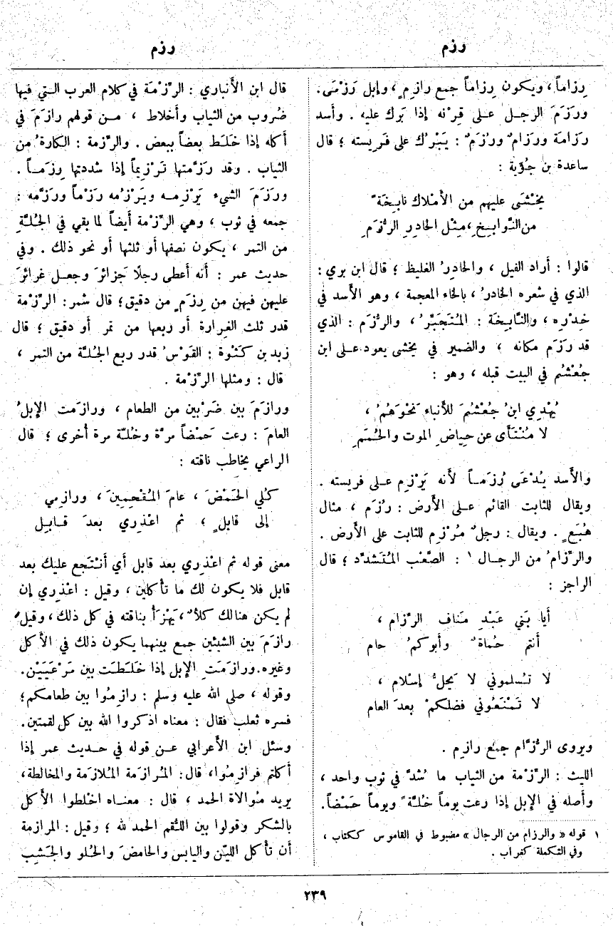 رِزاماً، وَيَكُونُ رِزاماً جَمْعَ رازِمٍ، وإِبل رَزْمَى. ورَزَمَ الرَّجُلُ عَلَى قِرْنه إِذا بَرك عَلَيْهِ. وأَسد رَزامَة ورَزامٌ ورُزَمٌ: يَبْرُك عَلَى فَرِيسته؛ قَالَ سَاعِدَةُ بْنُ جُؤَية: