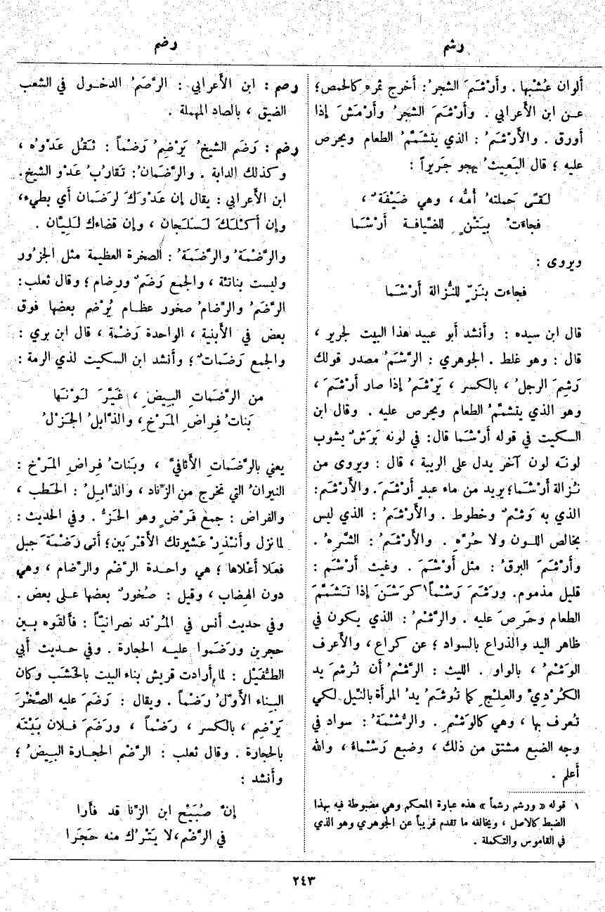 (1). قوله [ورشم رشماً] هذه عبارة المحكم وهي مضبوطة فيه بهذا الضبط كالأصل، ويخالفه ما تقدم قريباً عن الجوهري وهو الذي في القاموس والتكملة