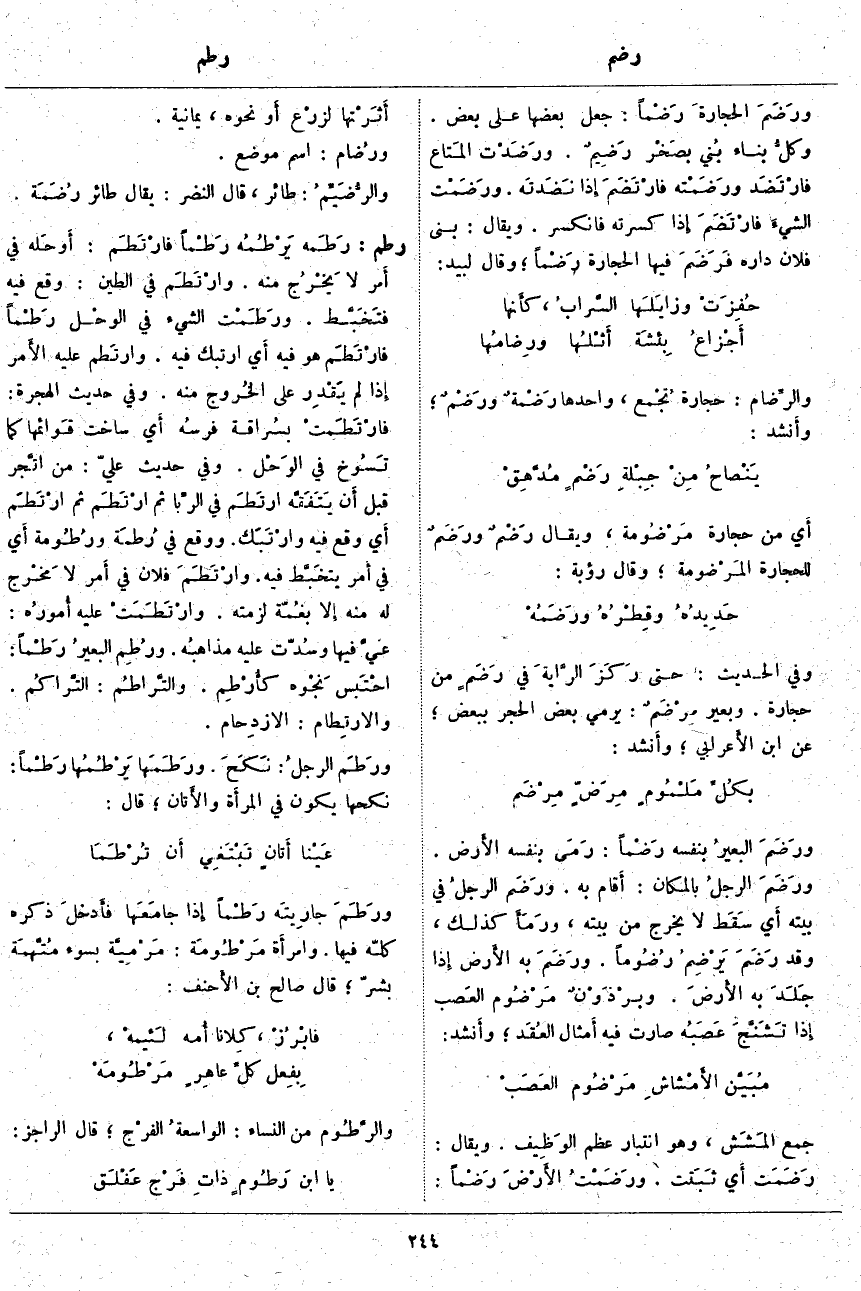 جَمْعُ المَشَش، وَهُوَ انْتِبَارُ عَظْمِ الوَظيف. وَيُقَالُ: رَضَمَت أَي ثَبَتت. ورَضَمْتُ الأَرْضَ رَضْماً: أَثَرْتها لزرْع أَو نَحْوِهِ، يَمَانِيَّةٌ. ورُضام: اسْمُ مَوْضِعٍ. والرُّضَيِّمُ: طَائِرٌ، قَالَ النَّضْرُ: يُقَالُ طَائِرٌ رُضَمَة.