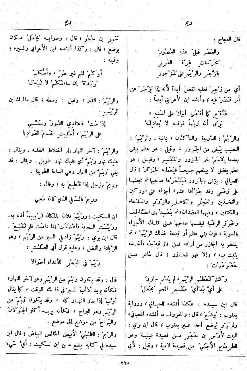 قَالَ: وَقَدْ يَكُونُ رَيَّمَ مِنَ الرَّيْمِ وَهُوَ آخِرُ النَّهَارِ، فكأَنه يُرِيدُ أَدْأَبَ السَّيْرَ فِي ذَلِكَ الْوَقْتِ، كَمَا يُقَالُ أَوَّبَ إِذا سَارَ النَّهَارَ كُلَّهُ، وَقَدْ يَكُونُ رَيَّمَ مِنَ الرَّيْمِ وَهُوَ الْبَرَاحُ، فكأَنه يُرِيدُ أَكثر الجَوَلانَ والبَراحَ مِنْ مَوْضِعٍ إِلى مَوْضِعٍ. والرِّيمُ: الظَّبْيُ الأَبيض الْخَالِصُ الْبَيَاضِ؛ قَالَ ابْنُ سِيدَهْ فِي كِتَابِهِ يَضَعُ مِنَ ابْنِ السِّكِّيتِ: أَيُّ شَيْءٍ