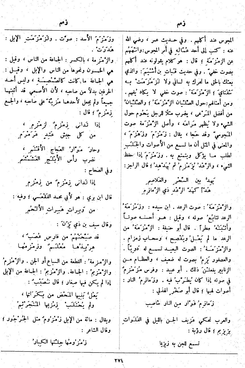 عُمَرَ، رَضِيَ اللَّهُ عَنْهُ: كَتَبَ إِلى أَحد عُمّالِهِ فِي أَمر الْمَجُوسِ: وانْهَهُم عَنِ الزمْزَمَة