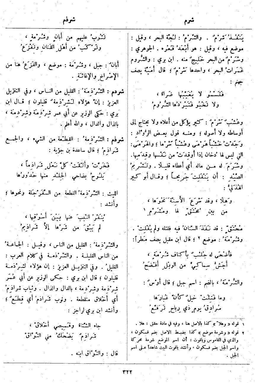 شرذم: الشِّرْذِمةُ: القِطْعة مِنَ الشَّيْءِ، وَالْجَمْعُ شَراذِمُ؛ قَالَ سَاعِدَةُ بْنُ جُؤَيَّةَ: