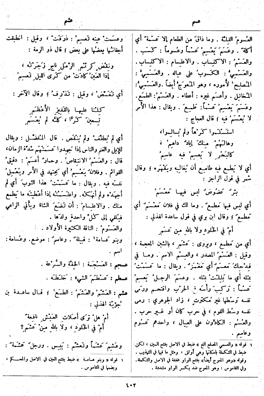عشم: العَشْمُ والعَشَمُ: الطمَعُ؛ قَالَ سَاعِدَةُ بْنُ جُؤيّة الْهُذَلِيُّ: